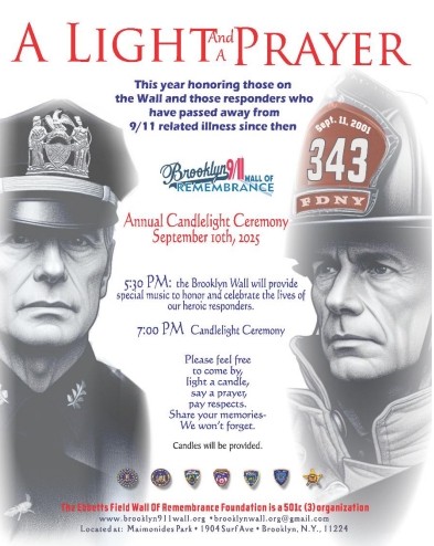 BROOKLYN 9/11 WALL OF REMEMBRANCE ANNUAL CANDLELIGHT CEREMONY - posted 8/27/2025
