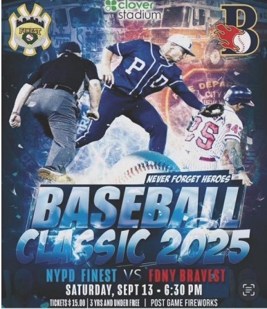 The FDNY Vs. NYPD never forget heroes Baseball Classic game will take place on Saturday, September 13th , 2025, at the Clover Stadium located at 1 Phil Tisi Wy, Pomona, NY 10970.